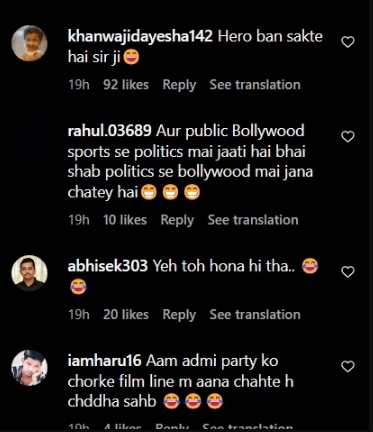 राघव यांच्या रॅम्पवॉकच्या फोटोवर कमेंट करताना एका यूजरने लिहिलं, ‘जिजाजींची बॉलीवूडमध्ये एन्ट्री’, तर दुसऱ्याने लिहिलं, ‘जिजाजी हिरो बनू शकतात,’ एका चाहत्याने लिहिलं, ‘तुम्ही हे करू शकता भाऊ.’ दुसऱ्या यूजरने कमेंट केली की, ‘जेव्हा मी हे चित्र पाहिलं तेव्हा मला वाटलं, राघव जुयाल आहे, आता मला आश्चर्य वाटलं.’ तर, ‘बाबूभय्या लडकी का चक्कर,’ असं म्हणत एकाने कमेंट केली आहे.