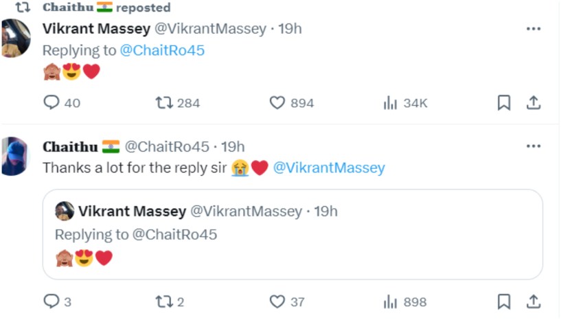 नुकताच बाबा झालेल्या विक्रांतने रोहितने केलेल्या कौतुकावर प्रतिक्रिया दिली. रोहित शर्माचा हा व्हिडीओ एक्सवर व्हायरल झाला आणि त्यावर विक्रांतने इमोजीने कमेंट केली. डोळे मिटणाऱ्या माकडाचे इमोजी, डोळ्यात हार्ट असलेले इमोजी आणि रेड हार्टचं इमोजी विक्रांतने कमेंट केले.