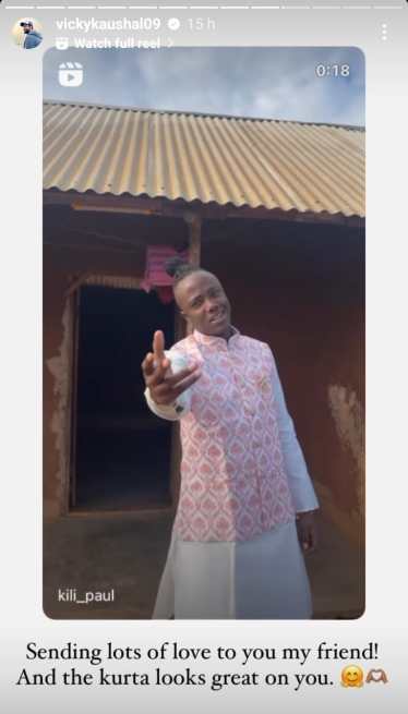 किलीने नुकतंच त्याचं एक रील शेअर केलं. हे रील ‘जरा हटके जरा बचके’ या चित्रपटातील ‘तू है तो मुझे और क्या चाहिये’ या गाण्याचं आहे. या गाण्यावर त्याने लिप्सिंग करतानाचा एक व्हिडीओ पोस्ट केला आहे. तर या वेळी त्याने पांढरा कुर्ता आणि त्यावर जॅकेट घातलं आहे. हे रील विकीने पाहिलं आणि त्याला ते खूप आवडलं. हे रील विकीने त्याच्या इन्स्टाग्राम अकाउंटवर शेअर करत लिहिलं, “तुला खूप खूप प्रेम किली… आणि तुला हा कुर्ता आणि आणि हा पारंपरिक लूक खूप शोभून दिसत आहे.”