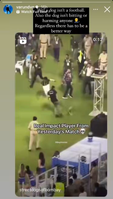 ‘स्ट्रीट डॉग्स ऑफ बॉम्बे’च्या अधिकृत इन्स्टाग्राम पेजवर हा व्हिडीओ शेअर करण्यात आला होता. श्वानाला अथकपणे लाथ मारल्यामुळे आणि त्याचा पाठलाग केल्याबद्दल त्यांनी ग्राउंड स्टाफला फटकारले. हा व्हिडीओ आपल्या स्टोरीवर शेअर करीत, वरुण धवनने आपला संताप व्यक्त केला. “श्वान काही फुटबॉल नाही. श्वान कोणाला नुकसान पोहोचवत नाही किंवा तो चावतही नाही आहे. बेपर्वाईनं वागण्यापेक्षा याबाबत एक चांगला मार्ग योजणं आवश्यक आहे,” अशा शब्दांत वरुणने श्वानाबरोबर गैरवर्तन करणाऱ्यांना फटकारले.