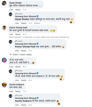 हेमांगीची पोस्ट व्हायरल झाल्यानंतर नेटकऱ्यांनी त्यावर मजेशीर कमेंट केल्या आहेत. एक नेटकरी म्हणाला, “खूप उशिरा पोहोचला पेट्रोलचा चटका.” दुसरा नेटकरी म्हणाला, “तुमच्या घरातली सायकल ती बाहेर काढा.” तिसरा नेटकरी म्हणाला, “काळजी करू नका मॅडम, काळी बाहुली बांधा, लिंबु, मिरची बांधा गाडीला पेट्रोल कमी होईल की नाही माहिती नाही पण नजर नाही लागणार गाडीला तुमच्या.” आणखी एक नेटकरी म्हणाला, “लिंबूटिंबू विचारांच्या हातात सत्ता दिली की सामान्यांवर अशी पाळी येते!”