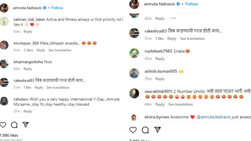 अमृता फिटनेसकडे अधिकाधिक लक्ष देतात तसेच विविध योग प्रकार करतात हे पाहून त्यांचं अनेकांनी कौतुक केलं. तर काहींना त्यांना ट्रोल करण्यास सुरुवात केली. एका फोटोमध्ये त्या जीभ बाहेर काढून पोझ देत आहेत. यावरुन अनेकांनी त्यांना तुम्हाला जीभ बाहेर काढण्याची काय गरज? असं म्हटलं. तर काहींनी त्यांना ड्रेसिंगवरुन साप म्हटलं आहे.