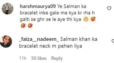 मलायका अरोरानं या ड्रेससोबत गळ्यात जो मिडल स्टोन गोल्डन नेकलेस घातला आहे तो हुबेहूब सलमान खानच्या हातात नेहमीच असणाऱ्या ब्रेसलेटसारखा दिसत आहे. अनेकांना तिचा हा नेकलेस पाहून सलमानच्या ब्रेसलेटची आठवण झाली. एका युजरनं मलायकाच्या व्हिडीओवर कमेंट करताना लिहिलं, “हे सलमान खानचं ब्रेसलेट हिच्या गळ्यात काय करत आहे. चुकून त्याच्या घरातून आणलं होतं का?” तर दुसऱ्या एका युजरनं आपल्या कमेंटमध्ये म्हटलंय, “सलमानचं ब्रेसलेट नेकलेस म्हणून घातलंय”