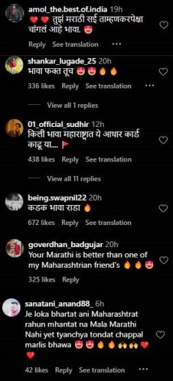 किलीच्या या व्हिडीओवर एका नेटकऱ्याने लिहिलं, “तुझं मराठी सई ताम्हणकरपेक्षा चांगलं आहे भावा.” तर दुसऱ्या नेटकऱ्याने लिहिलं, “किली भावा महाराष्ट्रात ये आधार कार्ड काढू या….” तसेच तिसऱ्या नेटकऱ्याने लिहिलं, “तुझं मराठी माझ्या एका महाराष्ट्रीयन मित्रांपेक्षा चांगलं आहे.” चौथ्या नेटकऱ्याने लिहिलं, “जे लोकं महाराष्ट्रात राहून म्हणतात ना मला मराठी नाही येत. त्यांच्या तोंडात चपल मारलीस भावा.”