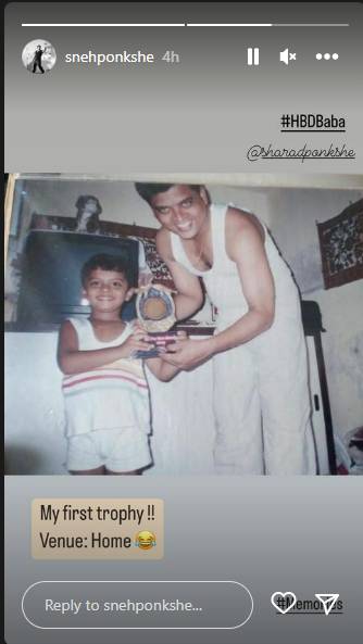 इन्स्टाग्राम अकाऊंटद्वारे वडील शरद पोंक्षे यांच्याबरोबरचा फोटो शेअर करत त्याने म्हटलं की, “वाढदिवसाच्या शुभेच्छा बाबा.” त्याचबरोबरीने त्याने वडिलांबरोबरचा दुसरा फोटोही शेअर केला. पण हा फोटो स्नेहच्या अगदी बालपणीचा आहे. तसेच यामध्ये शरद पोंक्षेही अगदी तरुण दिसत आहेत. शिवाय त्यांचं घरही अगदी साध दिसत आहे.