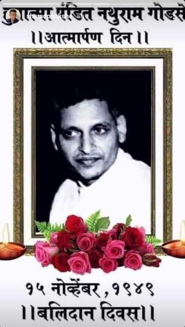 शरद पोंक्षे सोशल मीडियावर सक्रिय असणाऱ्या मराठी सिनेसृष्टीतील कलाकारांपैकी एक आहेत. त्यांच्या पोस्ट तुफान व्हायरल होत असतात. या माध्यमांमार्फत ते हिंदुत्त्ववादी विचार लोकांपर्यंत पोहचवण्याचा प्रयत्न करत असतात. महात्मा गांधी यांची हत्या केल्यामुळे नथुराम गोडसेला मृत्यूदंडाची शिक्षा ठोठावण्यात आली होती. आज त्याचा स्मृतीदिन आहे. या निमित्ताने नथुरामचा फोटो त्यांनी इन्स्टाग्रामवर शेअर केला आहे. त्या फोटोवर त्यांनी “हुतात्मा पंडित नथुराम गोडसे आत्मार्पण दिन, १५ नोव्हेंबर १९४५ बलिदान दिवस”, असे लिहिले आहे.