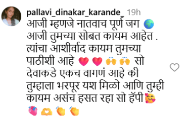 पुढे त्याने लिहिले, “आजी आणि माझं नातं – शब्दांच्या पलीकडचं.” अजिंक्य राऊतच्या या पोस्टवर चाहत्यांनी कमेंट्स केल्याचे दिसत आहे. “आजी तुमच्याबरोबर कायम आहेत. आजी म्हणजे नातवाचं पूर्ण जग”, “त्या कायम तुमच्याबरोबर आहेत”, “किती गोड”, “आजी आठवणींच्या रूपात कायम तुमच्याबरोबर आहेत आणि त्यांचा आशीर्वादही तुमच्याबरोबर आहे.”