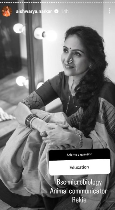 यावेळी एका चाहत्यानं ऐश्वर्या यांना त्यांच्या शिक्षणाबद्दल विचारलं. त्यावर त्या म्हणाल्या की, ‘बीएससी मायक्रोबायोलॉजी ॲनिमल कम्युनिकेटर रेकी (BSC microbiology animal communicator rekie)’.