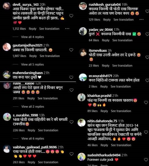राजेश्वरी आणि सोमनाथच्या व्हिडीओवर नेटकऱ्यांच्या प्रतिक्रियांचा अक्षरशः पाऊस पडला आहे. “एक नंबर जोडी”, “जब्याला चिमणी सापडली”, “राख पाहिजे होती लेका”, “आमचा जब्या आणि त्याची नजर आहे तशीच आहे”, “अरं जब्या काळ्या चिमणीची राख उडवायची होती, फुलं नाही”, अशा नेटकऱ्यांच्या प्रतिक्रिया व्हिडीओवर उमटल्या आहेत.