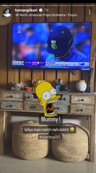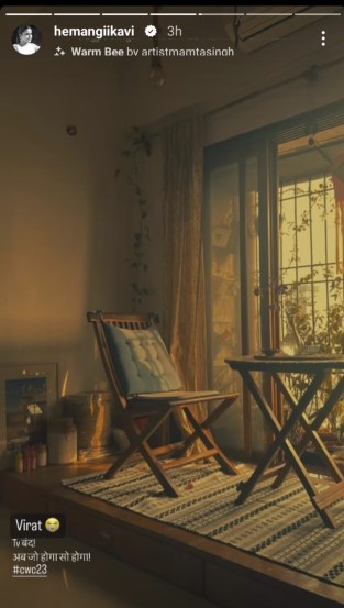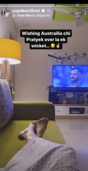 जुई व्यतिरिक्त अभिनेत्री हेमांगी कवीने हिने विराट कोहलीच्या विकेटनंतर टीव्ही बंद केल्याची स्टोरी शेअर केला आहे. ज्यामध्ये हेमांगीने लिहीलं आहे, “टीव्ही बंद, अब जो होगा सो होगा…”