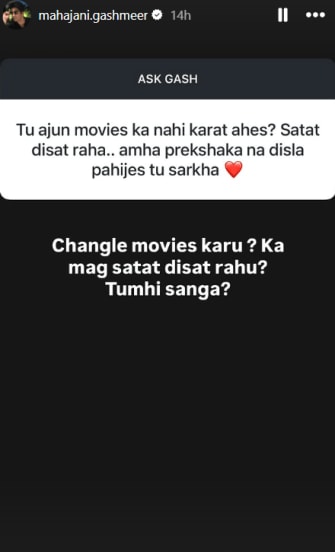आता नुकताच गश्मीरला एका चाहत्याने विचारले की, तुझा पुढचा मराठी चित्रपट कधी येणार आहे? त्यावर गश्मीरने उत्तर दिले की, माझ्या पुढच्या मराठी चित्रपटाचे शूटिंग डिसेंबर आणि जानेवारीमध्ये होणार आहे. पुढच्या वर्षी हा चित्रपट प्रदर्शित होणार आहे.