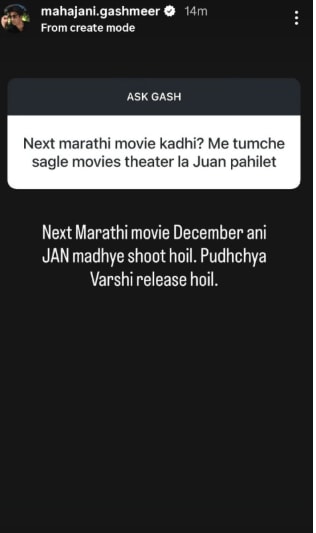 आता नुकताच गश्मीरला एका चाहत्याने विचारले की, तुझा पुढचा मराठी चित्रपट कधी येणार आहे? त्यावर गश्मीरने उत्तर दिले की, माझ्या पुढच्या मराठी चित्रपटाचे शूटिंग डिसेंबर आणि जानेवारीमध्ये होणार आहे. पुढच्या वर्षी हा चित्रपट प्रदर्शित होणार आहे.