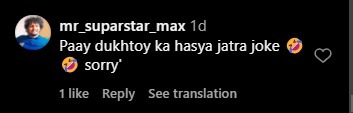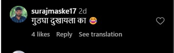या फोटोमध्ये प्राजक्ता गुडघ्यावर हात ठेवून पोज देताचा दिसतं आहे. हेच पाहून एका चाहत्यानं प्रतिक्रियेत लिहिलं की, “गुडघा दुखतोय का?” तर दुसऱ्या चाहत्यानं लिहिलं, “पाय दुखतोय का? हास्यजत्रा जोक सॉरी.” तसेच तिसऱ्या चाहत्यानं सुद्धा तेच विचारत लिहिलं आहे की, “गुडघेदुखी चालू झाली का?” अशाप्रकारेच प्रश्न प्राजक्ताच्या बऱ्याच चाहत्यांनी विचारले आहे. पण दुसऱ्या बाजूला तिचं सौंदर्य पाहून काही चाहते मात्र घायाळ झाले आहेत.