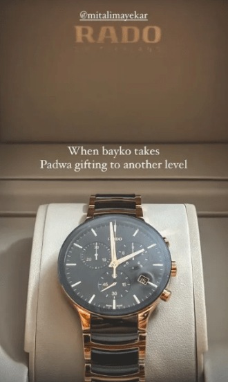 मितालीने पाडव्याची भेट म्हणून सिद्धार्थला राडो (rado) कंपनीचे महागडे घडयाळ दिले आहे. या घड्याळाची किंमत लाखो रुपयांच्या घरात आहे. सिद्धार्थने आपल्या इन्स्टाग्रामवर मितालीने दिलेल्या भेटवस्तूचा व्हिडीओ टाकला आहे. व्हिडीओ शेअर करीत सिद्धार्थने “Wifey has no chill. मी अजूनही थरथरत आहे” अशी कॅप्शनही दिली आहे. सिद्धार्थची ही पोस्ट सोशल मीडियावर व्हायरल झाली आहे. सायली संजीव, आरोह वेलणकरसारख्या अनेक कलाकारांसह चाहत्यांनी या पोस्टवर कमेंट्स करीत सिद्धार्थला शुभेच्छा दिल्या आहेत.