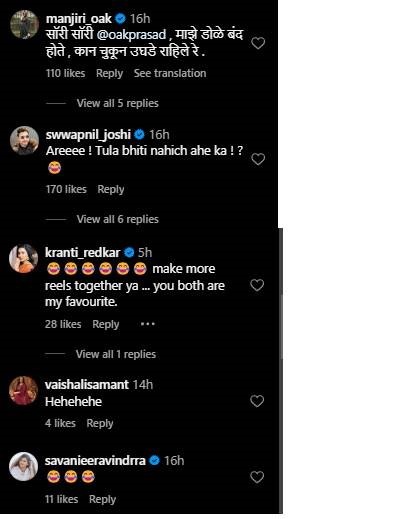 प्रसादने शेअर केलेल्या या व्हिडीओवर मंजिरीने मजेशीर प्रतिक्रिया दिली आहे. “सॉरी सॉरी प्रसाद ( Prasad Oak ) , माझे डोळे बंद होते, कान चुकून उघडे राहिले रे.” तसंच स्वप्नील जोशी प्रसाद व मंजिरीचा व्हिडीओ पाहून म्हणाला, “अरे, तुला भीती नाही आहे का?” तर अभिनेत्री क्रांती रेडकर म्हणाली, “तुम्ही दोघांनी अजून व्हिडीओ करा. तुम्ही दोघं मला खूप आवडता.”