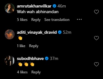 प्रसाद ओकने शेअर केलेल्या व्हिडीओवर कलाकार मंडळीसह त्याच्या चाहत्यांनी शुभेच्छा दिल्या आहेत. अभिनेत्री अमृता खानविलकर, आदिती द्रविड, सुबोध भावे अशा अनेक कलाकारांनी शुभेच्छा दिल्या आहेत.