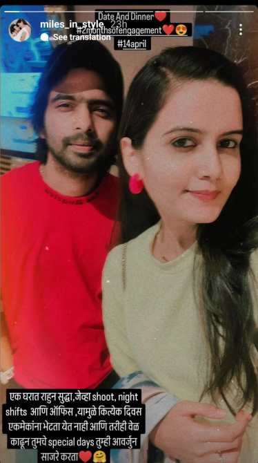 १४ एप्रिलला प्रथमेश व क्षितिजाच्या साखरपुड्याला दोन महिने पूर्ण झाल्यानिमित्ताने दोघं डेट आणि डिनरला गेले होते. याचा फोटो शेअर करत क्षितिजाने लिहिलं होतं, “एका घरात राहून सुद्धा, जेव्हा शूट, नाइट शिफ्ट आणि ऑफिस यामुळे कित्येक दिवस एकमेकांना भेटता येत नाही. तरीही वेळ काढून तुमचे स्पेशल डे तुम्ही आवर्जुन साजरे करता.” यादिवशी प्रथमेश व क्षितिजाने ‘मडगांव एक्सप्रेस’ चित्रपट बघितला होता.