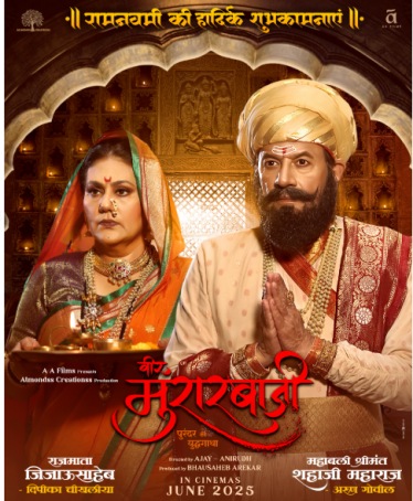 त्यांच्या अभिनयाची जादू पुन्हा एकदा प्रेक्षकांना अनुभवता येणार आहे. श्रीरामनवमीच्या निमित्ताने या दोघांचे एक आकर्षक पोस्टर प्रदर्शित झाले आहे. ‘वीर मुरारबाजी.. पुरंदर की युद्धगाथा’ या हिंदी चित्रपटात ही जोडी छत्रपती शहाजीराजे भोसले आणि राजमाता जिजाऊ यांच्या भूमिकेत दिसणार आहे. या पोस्टरमधील त्यांचा मराठमोळा लूक प्रेक्षकांचे लक्ष वेधून घेत आहे. या चित्रपटाची निर्मिती भाऊसाहेब आरेकर यांनी केली असून चित्रपटाचे दिग्दर्शन अजय-अनिरुद्ध यांनी केले आहे.