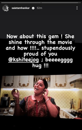 सईप्रमाणे सिद्धार्थ चांदेकर, अमृता खानविलकर, अतुल कुलकर्णी, सिद्धार्थ जाधव, क्षितीचा नवरा हेमंत ढोमे असा असंख्य मराठी कलाकारांनी या ‘रॉकी और रानी’ या चित्रपटाचे कौतुक केले आहे. सिद्धार्थ चांदेकरने सुद्धा क्षितीसाठी खास पोस्ट शेअर करत, “तुझा अभिमान वाटतोय…” असे म्हटले आहे.