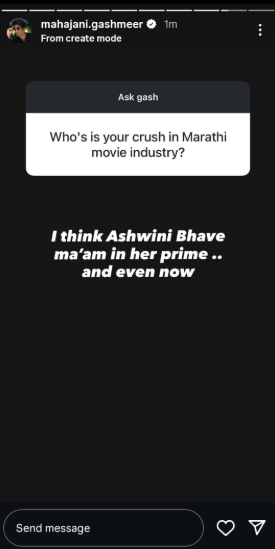 त्यातील एक प्रश्न होता की, मराठी चित्रपटसृष्टीत तुझी क्रश कोण आहे? त्यावर गश्मीर म्हणाला, “मला वाटते की, आश्विनी भावे मॅडम त्यांच्या काळातील आणि आतासुद्धा क्रश आहेत.”