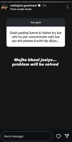 एका चाहतीने विचारले की, मी अभ्यास करण्याचा खूप प्रयत्न करत आहे. पण, लक्ष केंद्रित करू शकत नाहीये. कृपया काही टिप्स द्या. त्यावर गश्मीरने गमतीशीर उत्तर दिले. अभिनेता म्हणाला की, मला विसरून जा, तुमच्या समस्या आपोआप सुटतील.