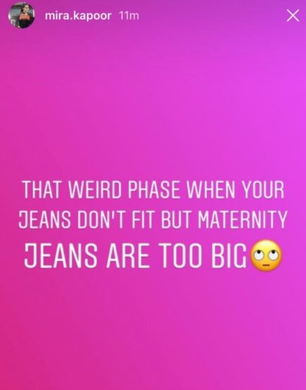 मीराने तिच्या इन्स्टाग्राम स्टेटसमध्ये लिहिले आहे की, सगळ्यात वाईट गोष्ट म्हणजे, जेव्हा तुम्हाला तुमची जीन्स होत नाही आणि मॅटर्निटीची जीन्स फारच मोठी होते. या स्टेटससोबत तिने संभ्रमात असलेली इमोजीही टाकली आहे. मीरा आणि शाहिद यांना नुकतेच सोनम कपूरच्या रिसेप्शन पार्टीमध्ये पाहण्यात आले होते. यावेळीही मीराने पांढऱ्या रंगाचा सैल डिझायनर ड्रेस घातला होता.