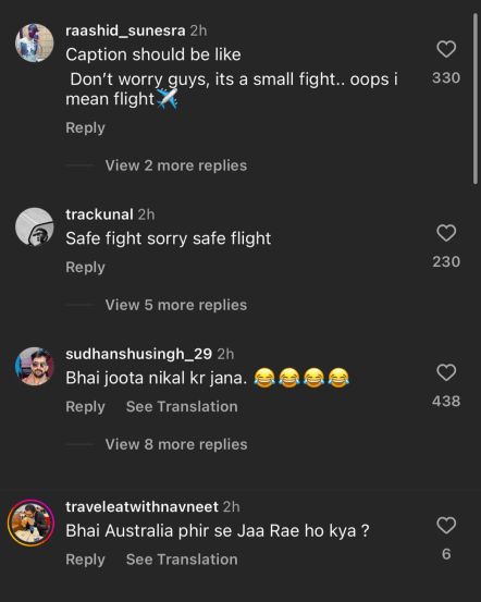 “कॅप्शन असं असलं पाहिजे की- काळजी करू नका मित्रांनो, ही एक छोटीशी फाईट आहे.. अरेरे फाईट नाही फ्लाइट आहे.”, “ऑस्ट्रेलियाला नाही जात आहात ना”, “कृपया आता तरी भांडू नका” अशा अनेक मजेशीर कमेंट्स नेटकर्यांनी या फोटोवर केल्या आहेत. कपिल आणि सुनीलचा हा फोटो सध्या सोशल मीडियावर मोठ्या प्रमाणावर व्हायरल होतोय.