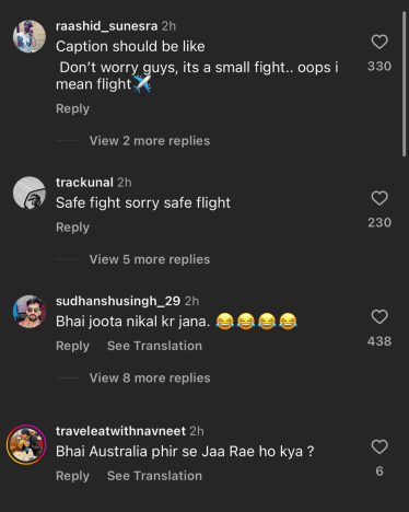 “कॅप्शन असं असलं पाहिजे की- काळजी करू नका मित्रांनो, ही एक छोटीशी फाईट आहे.. अरेरे फाईट नाही फ्लाइट आहे.”, “ऑस्ट्रेलियाला नाही जात आहात ना”, “कृपया आता तरी भांडू नका” अशा अनेक मजेशीर कमेंट्स नेटकर्यांनी या फोटोवर केल्या आहेत. कपिल आणि सुनीलचा हा फोटो सध्या सोशल मीडियावर मोठ्या प्रमाणावर व्हायरल होतोय.