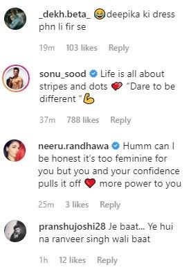 एका नेटकऱ्याने तर पुन्हा दीपिकाचे कपडे परिधान केलेस का? असा प्रश्न दीपिकाला विचारला आहे. तर काही नेटकऱ्यांनी त्याच्या आत्मविश्वासाची प्रशंसा केली आहे.
