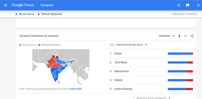 ‘गुगल ट्रेण्ड्स’चा आढावा घेतला तर गेल्या सात दिवसांत म्हणजेच जेव्हापासून शिवानीच्या परतण्याची चर्चा सुरू झाली तेव्हापासून गुगलवर तिचा सर्च वाढल्याचं दिसत आहे. ९ जून ते १५ जून दरम्यान हा सर्च सर्वाधिक होता.