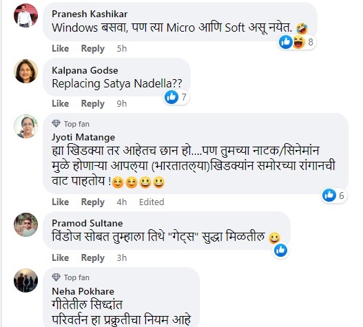 आता सुबोधने एवढी भन्नाट कॅप्शन दिल्यावर त्यावर कमेंट्सचा पाऊस तर पडणारच. काहींना खरोखरोच सुबोधने मायक्रोसॉफ्टमध्ये नोकरी करण्यास सुरुवात केल्यासारखं वाटलंय तर काहींनी विंडोज या मराठमोळ्या कॅप्शनवरुन कमेंट केल्यात. अगदी सुबोध अमेरिकेमध्ये स्थायिक झाल्यापासून ते मायक्रोसॉफ्टचे मुख्य कार्यकारी अधिकारी सत्या नाडेला यांचा बायोपिक सुबोध करणार आहे की काय पर्यंतच्या अनेक शंका त्याच्या या पोस्टवरुन चाहत्यांनी उपस्थित केल्यात. पाहुयात सुबोधचे चाहते काय म्हणतायत.