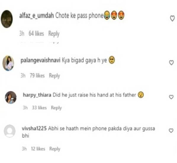 हा व्हिडीओ पाहून अनेकांनी करीना-सैफला सोशल मीडियावर ट्रोल केले. एक नेटकरी म्हणाला, “आता पासून फोन वापरायला दिला.” दुसरा नेटकरी म्हणाला, “तैमूरला शिष्टाचार किंवा समाजात वागण्याची पद्धत शिकवा असा सल्ला दिला आहे.” तिसरा नेटकरी म्हणाला, “आतापासून ही परिस्थिती आहे, मग पुढे जाऊन काय करणार?” आणखी एक नेटकरी म्हणाला, “हात कोणावर उचलला सैफ वर?”