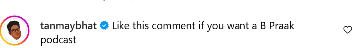 या सगळ्यात तन्मय भट्टच्या कमेंटने लक्ष वेधून घेतले आहे. तन्मय भट्टने मजेशीर कमेंट्स केल्याचे पाहायला मिळत आहे. त्याने रणवीरच्या पोस्टवर लिहिले, “जर तुला बी प्राक तुझ्या पॉडकास्टमध्ये पाहिजे असेल तर ही कमेंट लाइक कर”, पुढे तन्मय भट्टने सबस्क्रायबर्सना उद्देशून लिहिले, “तुझ्या उरलेल्या सबस्क्रायबर्सबरोबर तू फोटो काढलेस हे पाहून छान वाटले.”