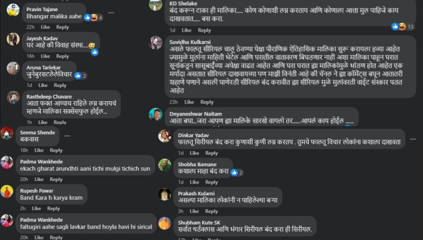 एक नेटकऱ्यानं या प्रोमोवर प्रतिक्रिया देत लिहीलं, “फालतू मालिका बंद करा.. कुणाशी कुणी लग्न करतंय. तुमचे फालतू विचार लोकांना कशाला दाखवता…” तर दुसऱ्या नेटकरीनं लिहीलं आहे, “असली फालतू मालिका चालू ठेवण्यापेक्षा पौराणिक ऐतिहासिक मालिका सुरू करायला हव्या आहेत. ज्यामुळे मुलांना माहिती मिळेल आणि घरातील वातावरण बिघडणार नाही. अशा मालिका पाहून घरात सूनांकडून सासूबाईंच्या अपेक्षा वाढत आहेत. घराघरात या मालिकांमुळे भांडण होत आहेत. एक मर्यादा असते मालिका दाखवण्याची… पण माझी विनंती आहे की, चॅनलने या प्रतिक्रिया बघून आतातरी शहाणपणाने असली घाणेरडी मालिका बंद करावी… या मालिकेमुळे मुलांवरती वाईट संस्कार होत आहेत.” तसेच तिसऱ्या नेटकऱ्यानं लिहीलं, “किती नाटकी दाखवतात… ज्याने कोणी ही मालिका काढली त्याचा हातात नारळ द्या.”