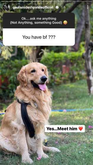 या सेशनमध्ये तिच्या चाहत्यांनी तिला तिच्या कामाबरोबरच तिच्या वैयक्तिक आयुष्याबद्दल अनेक प्रश्न विचारले. गौतमीनेही त्या प्रश्नांना अगदी दिलखुलासपणे उत्तरे दिली. यावेळी एका चाहत्याने तिला विचारलं की, “तुझा बॉयफ्रेंड आहे का?” त्यावर गौतमीने उत्तर दिलं. त्यांच्या पाळीव श्वानाचा फोटो शेअर करत तिने लिहिलं, “हो…भेटा त्याला.” आता गौतमीने दिलेल्या या उत्तराकडे सर्वांचं लक्ष वेधलं गेलं आहे. त्यावरून गौतमी सध्या सिंगल असावी असा अंदाज तिचे चाहते बांधू लागले आहेत.