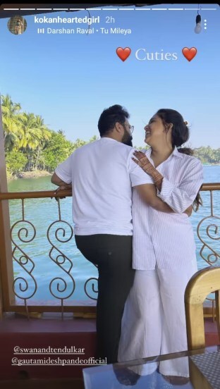 अंकिताने शेअर केलेल्या फोटोमधून गौतमी-स्वानंद देवबागला फिरायला गेल्याचं स्पष्ट झालं आहे. दोघं कोकणच्या समुद्र किनारी एन्जॉय करताना दिसत आहे. अंकिताने इन्स्टाग्राम स्टोरीवर गौतमी-स्वानंदचे अनेक फोटो, व्हिडीओ शेअर केले आहेत.