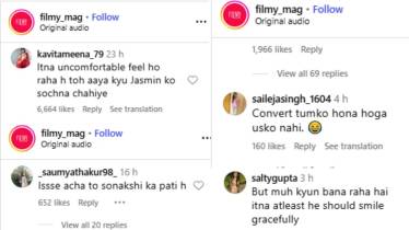 सोशल मीडियावरील व्हिडीओखाली एकाने इतकं “अनकम्फर्टेबल वाटत होतं तर मग आलासच का जास्मिन, तू विचार करायला पाहिजे होता”, “याच्यापेक्षा चांगला तर सोनाक्षीचा नवरा आहे”, “कन्व्हर्ट तुला व्हावं लागेल त्याला नाही” अशा कमेंट केलेल्या पाहायला मिळत आहेत.