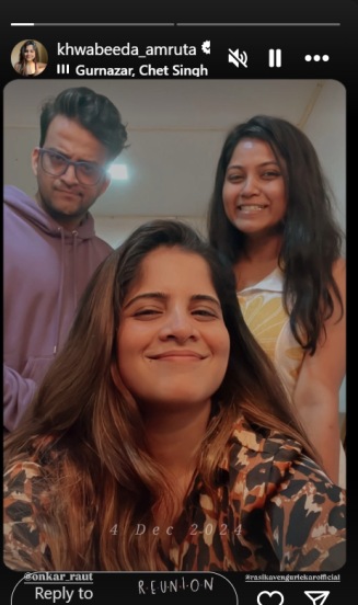 अभिनेत्री अमृता देशमुखने सोशल मीडियावर महाराष्ट्राची हास्यजत्रामध्ये दिसणाऱ्या कलाकारांबरोबरचा फोटो शेअर केला आहे. अभिनेत्री रसिका वेंगुर्लेकर आणि अभिनेता ओंकार राऊत यांच्याबरोबरचा हा फोटो आहे. यावर अभिनेत्रीने रियुनियन असे लिहिले आहे. याचबरोबर, अमृताने तिच्या स्टोरीमध्ये एक व्हिडीओ रिपोस्ट केला आहे, ज्यात ती फोटोंसाठी पोज देताना दिसत आहे. त्यानुसार ती ‘महाराष्ट्राची हास्यजत्रा’मध्ये एन्ट्री घेणार असं म्हटलं जात आहे. अमृता देशमुख आता या सर्व कलाकारांबरोबर महाराष्ट्राची हास्यजत्रा या कार्यक्रमातून प्रेक्षकांचे मनोरंजन करण्यास सज्ज झाली आहे.