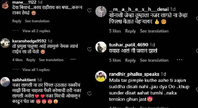 सोनालीच्या या व्हिडीओवर चाहत्यांनी मजेशीर प्रतिक्रिया दिल्या आहेत. एका चाहत्यानं लिहीलं, “नजर लागली ना तर पुरळ उठतात. नक्कीच माझी किंवा चाहत्यापैकी कोणाची तरी नजर लागली असेल. मिरची ओवाळून काढून घेत जा.” तर दुसऱ्या चाहत्यानं लिहीलं आहे की, सोनाली जेव्हा तुला नजर लागते ना तेव्हा पुरळ चेहऱ्यावर येता. तसेच तिसऱ्या चाहत्यानं लिहीलं आहे की, तो प्रमुख पाहुणा आहे. त्यामुळे नेमकं त्याचं वेळेला तो येतो.