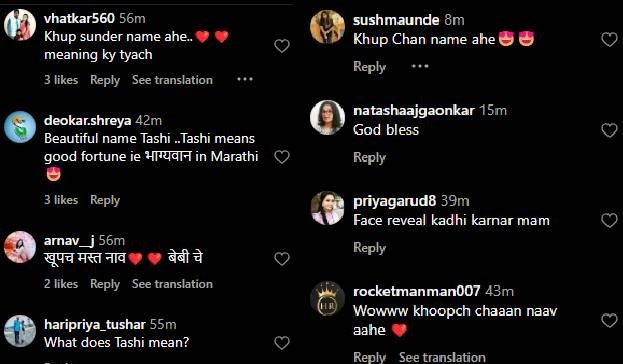 सईची ही पोस्ट चांगलीच व्हायरल झाली असून चाहते भरभरून प्रतिक्रिया देत आहेत. “खूप सुंदर नाव आहे, पण त्याचा अर्थ काय?,” अशा अनेक प्रतिक्रिया चाहत्यांनी दिल्या आहेत. तसेच काहींनी लेकीचा चेहरा कधी दाखवणार?, असं विचारलं आहे.