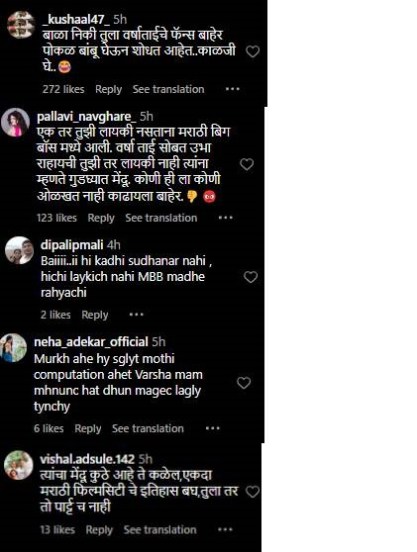 निक्की तांबोळीचा हाच प्रोमो पाहून पुन्हा एकदा प्रेक्षक भडकले आहेत. एका नेटकऱ्याने लिहिलं आहे, “बाळा निक्की तुला वर्षाताईंचे चाहते बाहेर बांबू घेऊन शोधत आहेत. काळजी घे.” तर दुसऱ्या नेटकऱ्याने लिहिलं आहे, “एकतर तुझी लायकी नसताना मराठी बिग बॉसमध्ये आली. वर्षाताईंबरोबर उभं राहायची तुझी लायकी नाही. त्यांना म्हणते गुडघ्यात मेंदू. कोणी हिला ओळखत नाही. बाहेर काढा.” तसंच तिसऱ्या नेटकऱ्याने लिहिलं आहे, “त्यांचा मेंदू कुठे आहे ते कळेल. एकदा मराठी सिनेसृष्टीचा इतिहास बघ.” चौथ्या नेटकऱ्याने लिहिलं आहे, “बाई…ही कधी सुधारणार नाही. बिग बॉस मराठीच्या ( Bigg Boss Marathi ) घरात राहण्याची हिची लायकी नाही.” पाचव्या नेटकऱ्याने लिहिलं, “ही मुर्ख आहे. सर्वात मोठी स्पर्धक वर्षा उसगांवकर असल्यामुळे त्यांच्यामागे हात धुवून लागली आहे.”