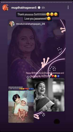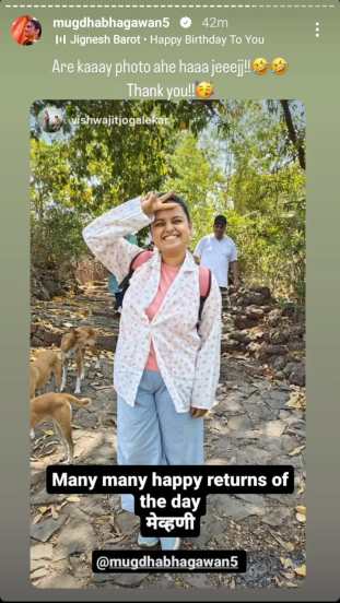 तसेच मृदुलाचा नवरा विश्वजीत जोगळेकरने इन्स्टाग्राम स्टोरीवर मुग्धाचा मजेशीर फोटो शेअर करत लिहिलं आहे, “वाढदिवसाच्या खूप खूप शुभेच्छा मेव्हणी.” यावर मुग्धा जिजाजीचे आभार मानतं म्हणाली, “अरे काय फोटो आहे हा जीज…थँक्यू.”