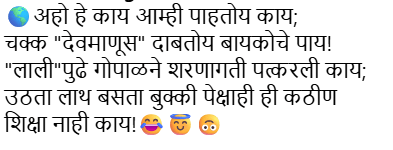 शेवटी लाली विचारते, “पाय?” त्यावर गोपाळ चेपतो असे म्हणत तिचे पाय दाबत असल्याचे दिसत आहे. गोपाळच्या चेहऱ्यावर चिडचिड तर लालीच्या चेहऱ्यावर जिंकल्याचे भाव दिसत आहेत.