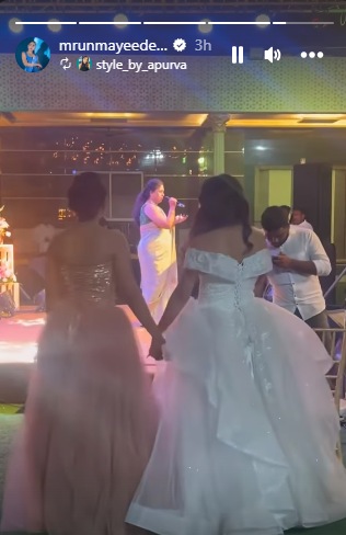 गौतमीच्या संगीत सोहळ्यातील फोटो, व्हिडीओ मृण्मयीसह अनेक कलाकार मंडळींनी सोशल मीडियावर शेअर केले आहेत. मृण्मयीने शेअर केलेल्या इन्स्टाग्राम स्टोरीमध्ये गौतमी होणारा नवरा स्वानंदबरोबर रोमँटिक डान्स करताना दिसत आहे. याचा व्हिडीओ ‘सिने अपडेट्स’ या इन्स्टाग्राम पेजवर शेअर करण्यात आला आहे. या संगीत सोहळ्यात गौतमीची आई खास गाणं गाताना दिसली. ‘आओ हुजूर तुमको’ हे गाणं गौतमीच्या आईने गायलं.
