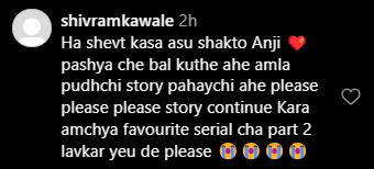 पण ‘सहकुटुंब सहपरिवार’ या मालिकेचा हा शेवट पाहून नेटकऱ्यांनी प्रश्न उपस्थित केले आहेत. शिवाय मालिकेच्या दुसऱ्या भागाची मागणी केली आहे. एका नेटकऱ्यानं लिहिलं आहे की, “हा शेवट कसा असू शकतो? पशा-अंजीचं बाळ कुठे आहे? आम्हाला पुढची कहाणी पाहायची आहे. कृपा करून कहाणी वाढवा, आमच्या आवडत्या मालिकेचा भाग दुसरा लवकर येऊ द्या प्लीज”, तर दुसऱ्या नेटकऱ्यानं लिहिलं आहे की, “प्लीज या मालिकेचा दुसरा भाग आणा.” तसेच तिसऱ्या नेटकऱ्यानं लिहिलं की, “आम्हाला पशा-अंजीचं बाळ बघायचं आहे.”