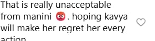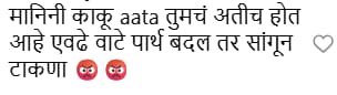 तर अनेक नेटकऱ्यांनी मानिनीचे वागणे आवडत नसल्याचे लिहिले आहे. “आता जरा अतीच होत आहे”, “काव्या आणि पार्थ यांच्या स्टोरीमध्ये काहीतरी सकारात्मक दाखवा. मानिनीचे वागणे मला आवडत नाहीये”, “मानिनी काकू आता अतीच होत आहे”, “सगळा ट्रॅकच नकारात्मक केला आहे”, “मानिनी काकू तुमचं वागणं चांगलं नाही”, “ज्या दिवशी मानिनीला कळेल की तो तिचा मुलगा जीवा आहे. तर तोंड दाखवता येणार नाही”, अशा अनेक कमेंट्स पाहायला मिळत आहे.
