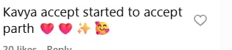हा प्रोमो पाहिल्यानंतर काही नेटकऱ्यांनी आनंद व्यक्त केला आहे. “काव्याने पार्थला स्वीकारण्यास सुरुवात केली”, “खूप छान प्रोमो आहे”, “आम्हाला काव्या व पार्थ यांना एकत्र पाहायचे आहे”, असे लिहित मत व्यक्त केले.