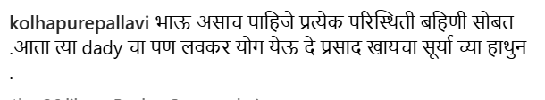 हा प्रोमो पाहिल्यानंतर अनेक नेटकऱ्यांनी त्यांच्या भावना व्यक्त केल्या आहेत. काहींनी भाऊ असाच हवा असे म्हटले आहे, तर काहींनी महिलांचा आदर केला पाहिजे असे म्हटले आहे. अनेक प्रेक्षकांनी सूर्याचे कौतुक केले आहे. एका नेटकऱ्याने म्हटले, “भाऊ प्रत्येक परिस्थितीत बहिणीबरोबर असाच पाहिजे. आता सूर्याच्या हातून प्रसाद खायचा त्या डॅडींचासुद्धा लवकर योग येऊ दे”, दुसऱ्या एका नेटकऱ्याने म्हटले, “सूर्या त्याला अजून जोरात मार, आमच्यातर्फे मार”, आणखी एका नेटकऱ्याने म्हटले, “वाह! याची आतुरतेने वाट बघत होतो”, “असा भाऊ प्रत्येक बहिणीला असावा”, असे म्हणत सूर्याचे कौतुक केले आहे.