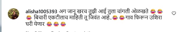 एका नेटकऱ्याने लिहिले, “तू कुठे हरवलीस गं? जयंत तुला शोधत आहे आणि तू इकडे रील बनवत आहेस”, असे लिहीत हसण्याच्या इमोजी शेअर केल्या गेल्या आहेत. दुसऱ्या एका नेटकऱ्याने लिहिले, “तुम्ही आता मालिकेत पुन्हा येणार नाही का?”, एका नेटकऱ्याने लिहिले, “याचा अर्थ ही समुद्रात पडल्यानंतर वाचली आणि पाण्यातून बाहेर आली”, दुसऱ्या एका नेटकऱ्याने लिहिले, “अगं जानू, खरंच तुझी आई तुला चांगली ओळखते. बिचारी एकटीलाच माहीत आहे की, तू जिवंत आहेस. गाव फिरून उशिरा घरी येणार”, असे लिहीत हसण्याच्या इमोजी शेअर केल्या आहेत.