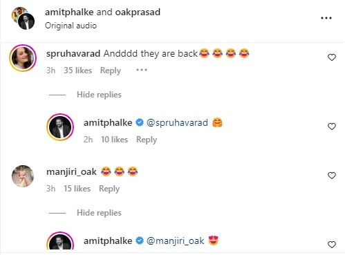 हा व्हिडीओ पाहून अनेक कलाकारांनी यावर प्रतिक्रिया दिल्या आहेत. अभिनेता प्रसाद ओकची पत्नी मंजिरी ओक हिने यावर हसण्याचे इमोजी शेअर करत प्रतिक्रिया दिली आहे. तर अभिनेत्री स्पृहा जोशीने ‘आणि अखेर ते परत आलेत’, असं म्हणत कमेंट केली आहे. तसेच श्रृती मराठेनेही या व्हिडीओवर हसतानाचे आणि फायर असे दोन इमोजी शेअर केले आहेत. दरम्यान सध्या या कोहली फॅमिलीचा व्हिडीओ व्हायरल होताना दिसत आहे.